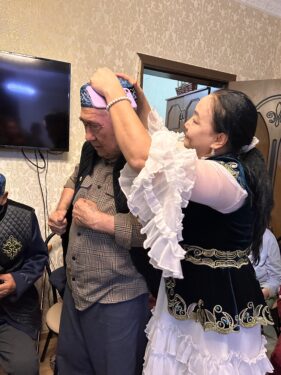 Балабақша ұжымы ән-күйден шашу шашып қоймай себет толы тәтті-тармақ, жемістерін де сыйлады. Сонымен бірге дендерінің саулығын ойлап, пансионаттағы 25 қарияның бәріне сырылған камзол жапты. «Аманат» партиясының да құттықтау лебізін жеткізуді ұмыт қалдырған жоқ. Ауыл ардагері Шакиева Бөбехан Баратқызы ыстық ықыласын білдіріп, тілек соңын тәтті әнге жалғады. Іс-шара соңында пансионат басшысы Сағат Турусбекова қазіргі таңда мемлекет тарапынан қарттарға әлеуметтік ерекше қолдау көрсетіліп келе жатқандығын айтып, балабақша ұжымының азаматтық жауапкершіліктеріне алғысын білдірді.