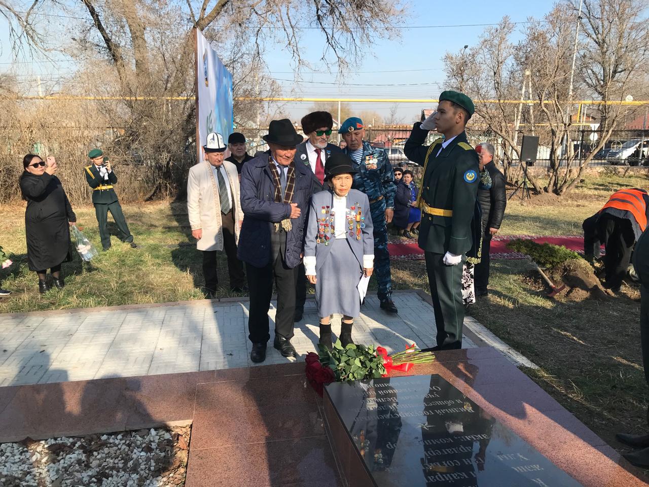 Мероприятие прошло в молодежном парке имени Динмухамеда Кунаева, который находится на территории юридического колледжа. Здесь собралось немало народу, в частности гости из Киргизии, заслуженный деятель Кыргызской республики, почетный гражданин города Бишкека, ветеран Афганской войны и Вооруженных сил, председатель Совета защиты прав ветеранов войны и тыла, обладатель ордена Красной звезды, подполковник в отставке Мелис Ногойбоевич Бейшеев, видный общественный деятель, заслуженный деятель труда, Почетный гражданин города Бишкек Калбубу Менсеитова, директор исторического музея «Чоң Арық», общественный деятель, Почетный гражданин города Бишкек, Жанибек Баргыбаев, ветеран войны города Бишкек, ветеран Вооруженных сил, член Совета Президиума защиты прав ветеранов труда и тыла Нургуль Турсынова. В мероприятии приняли участие с казахстанской стороны, секретарь районного маслихата Мухит Алибеков, народный писатель и общественный деятель Бактыгали Айжигитов, его супруга Сауле Нагманова, председатель общественного объединения «Ер намысы», почетный ветеран общества «Алаш прайд спорт» Ерболат Алидин, заместитель председателя народного фонда Конаева Даулетбек Жанботаев, председатель общественного объединения «Жалайыр» Кажымукан Ибрагимов.