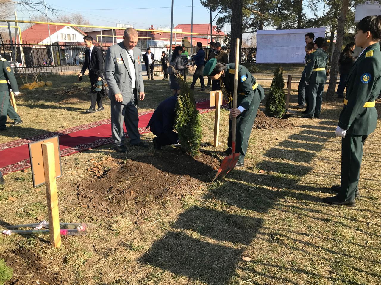 — Уважаемые талгарцы, мы очень дорожим тем, что присутствуем на таком важном событии — открытии Аллеи славы ветеранов Войны, погибших воинов. Наша задача — донести до молодежи память о тех событиях, чтобы они знали, какой ценой досталась победа над фашистами. Эта аллея призвана сохранить историческую память и воспитать подрастающее поколение в духе уважения и патриотизма. Уверен. что эта Аллея будет напоминать о связи поколений и доносить новым поколениям память о подвиге казахстанцев и братьев-киргизов, — отметил в своей речи Жанибек Додонович. После торжественных речей состоялась закладка капсулы земли, привезенной из Ржевска. Участники закопали ее в землю под памятником героям, погибших под Ржевском. Далее все собравшиеся отдали дань памяти видному государственному и общественному деятелю, участнику Великой Отечественной войны, поэту и композитору Алханбеку Малькееву и возложили к памятнику цветы. Кульминацией открытия стала посадка 10 елей, предназначенных для погибших героев: Кемеля Токаева, Касыма Болтаева, М.Сенгирбаева, Петрушева, С. Егимбердиева, Д.Шопекова, Р. Кошкарбева, Панфилова, Б. Момышулы, А. Косаева. В мероприятии приняли участие учащиеся СШ № 6 им. Жабаева. В ходе мероприятия были награждены за вклад в развитие и укрепление дружбы и сплоченности между народами, патриотическое воспитание молодежи и проведение активной работы по увековечиванию памяти героев супруги Бакыткали Айжигитов и Сауле Нагманова знаком «Почетный ветеран».