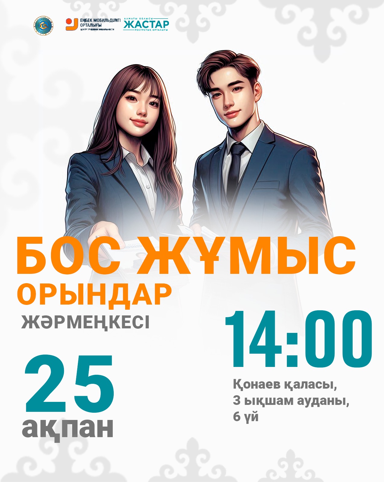 ✅Мақсат: жұмыссыз жастар мен азаматтарға қажетті вакансияны табуына ықпал ету. Жәрмеңкеге жұмыс бойынша сұрақтары бар кез келген тұрғын қатыса алады. Мамандар жауап береді.