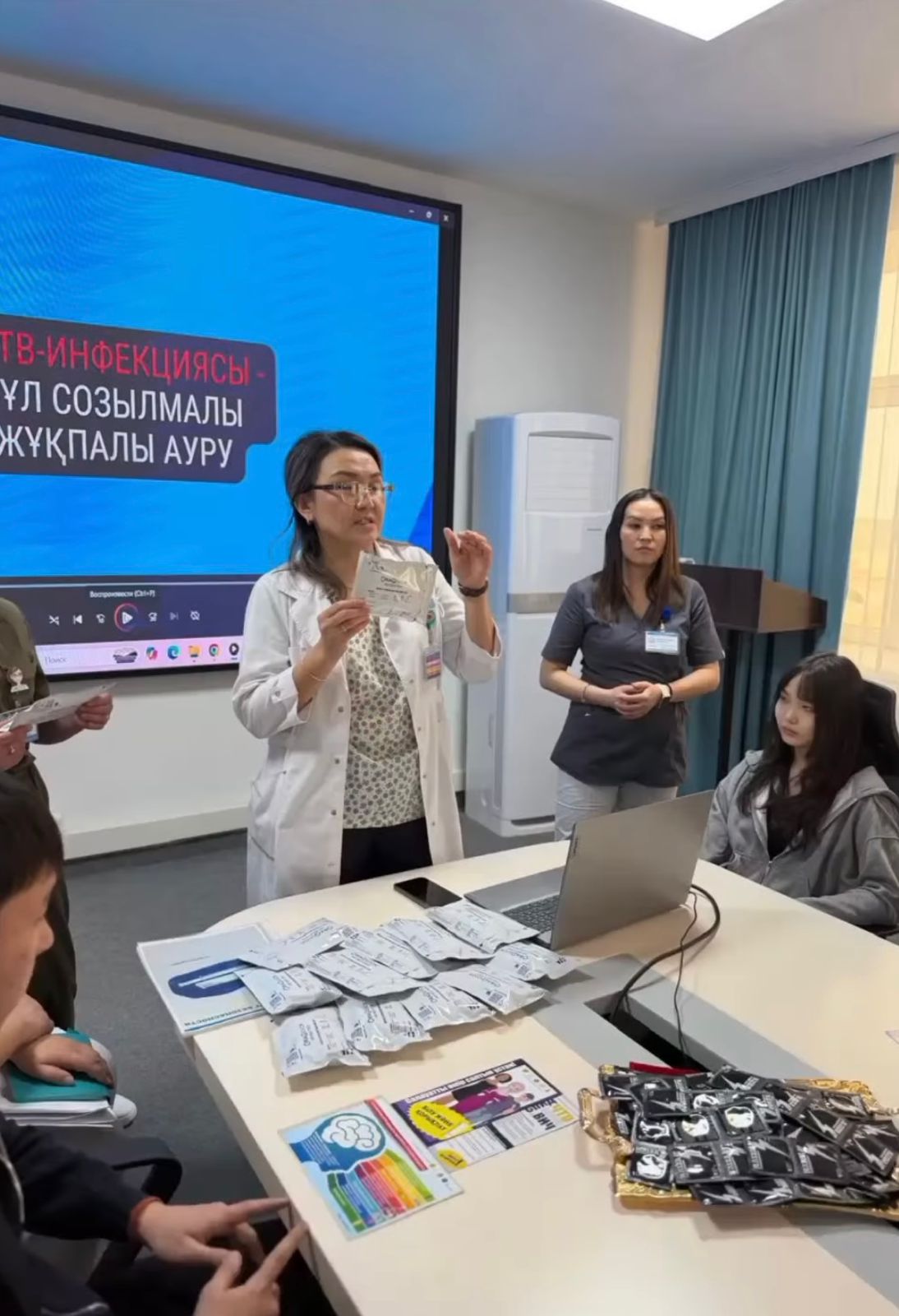Тренинг барысында қатысушыларға АИТВ-ға сілекей арқылы жүргізілетін экспресс-тестілеу әдісі тәжірибелік түрде көрсетілді. Іс-шара соңында ниет білдірген студенттерге АИТВ-ға тегін және құпия тестілеуден өту мүмкіндігі ұсынылды.