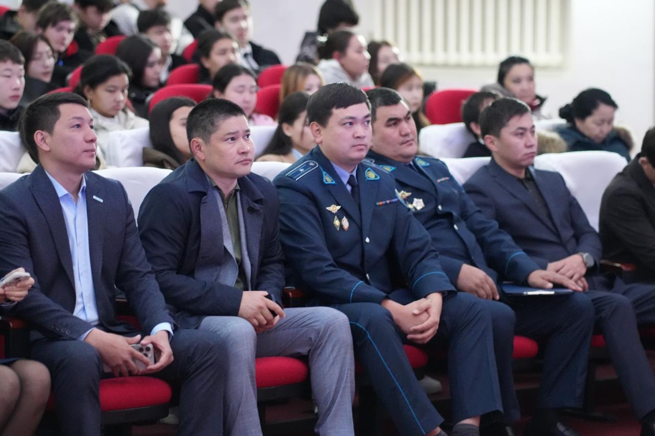 — Как всем известно, 1 апреля 2025 года было принято Постановление Правительства Республики Казахстан «Об утверждении Концепции продвижения идеологии правопорядка в обществе на 2025-2030 годы». Для реализации этого постановления утвержден акиматом Талгарского района план действий, и ведется работа по его выполнению. В частности, было организовано около 100 мероприятий по профилактике правонарушений среди молодежи Талгарского района, охвативших более 10 тысяч молодых людей. Совместно с районным управлением полиции в городе Талгаре был проведен ряд мероприятий по профилактике правонарушений, насилия, наркомании, интернет-мошенничества и коррупции среди молодежи и жителей. Для студентов вузов и школьников были организованы встречи, круглые столы, тренинги, кампании и разъяснительная работа. По предложению Генеральной прокуратуры Республики Казахстан в рамках проекта «Правопорядок» в 10 школах и 3 организациях профессионального образования Талгарского района впервые в республике были введены уроки права в пилотном режиме. В рамках проекта уроки права охватили 6287 учащихся, занятия проводятся раз в неделю. Как сказал Глава государства, для создания справедливого и безопасного Казахстана необходимо фундаментально установить верховенство права и порядка. Это непоколебимая опора защиты интересов, прав и свобод всех граждан. Необходимо повышать правовую культуру общества и совершенствовать систему правоохранительных органов. Это масштабная и важная задача. Я хотел бы поблагодарить Вас за активное участие в таких важных событиях и Ваш вклад в развитие общества, — отметил в своей речи главный идеолог района. Поприветствовал собравшуюся студенческую молодежь присутствующий на этом мероприятии руководитель областного Молодежного ресурсного центра Мақсат Кенешев: